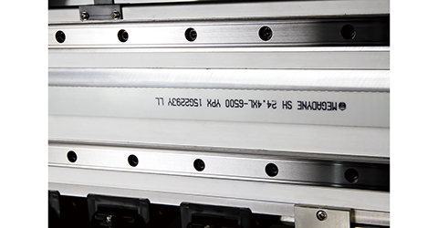 高强度工业铝梁,配备THK双静音导轨和麦高迪(MEGADYNE)高强度皮带,可以提供同类设备无法企及的打印运动稳定性和经受客户高强度打印的考验。